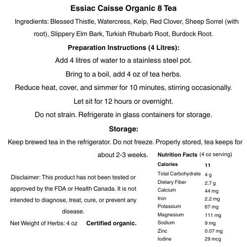 Welcome to Essiac Caisse Organic 8 Tea! 🚚 Free Shipping Across Canada 🎁 Plus an Additional 15% OFF All Products ⏳ Limited Time Fall Seasonal Special Deal! Dismiss